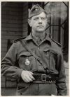 Min fars sekretær (en lotte, som gik under navnet “Samson”) i Brigaden i Sverige har i eftermiddags(!) fortalt mig, at man skulle skrive til “Hr. Madsen” på den danske ambassade i Stockholm, hvorefter “Hr. Madsen” sørgede for at breve kom frem til de rette personer. Min far, der “tog et smut til Sverige i begyndelsen af 1945” fik desværre ikke breve ad den vej. Jeg mener ikke, at han fik breve herhjemmefra overhovedet i de få måneder, han var i Sverige i brigaden, men han sendte flere breve til Danmark, og de blev smuglet ind i Danmark af fiskere og afsendt fra bl.a. Grenå med danske frimærker. Du får nogle flere oplysninger i morgen – jeg skal se dyner – men du får lige et billede af den seje kriger fra brigadetiden i Sverige!