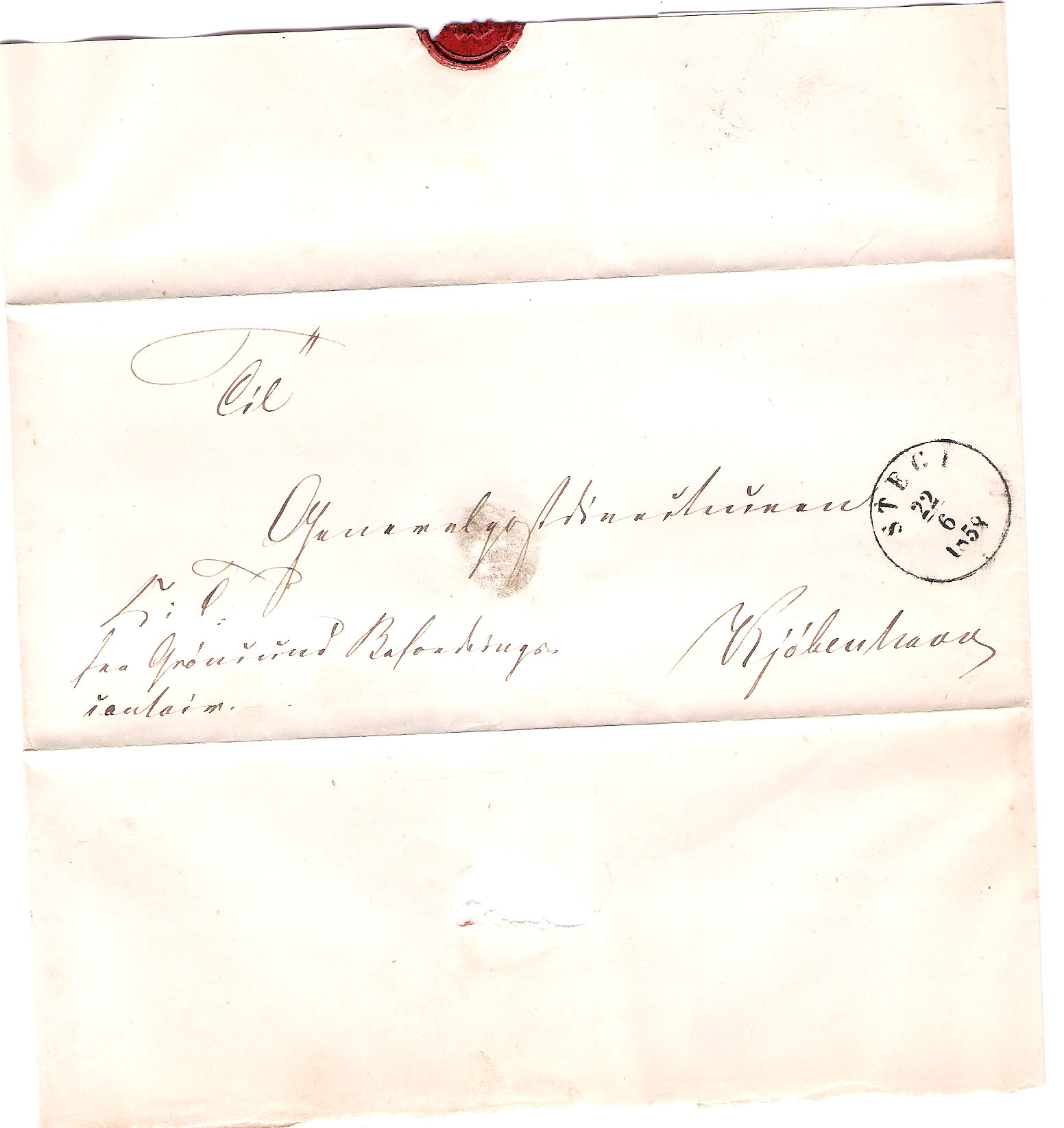 Ingen afs, halvt segl. to bogstaver i seglet, ingen karte eller portoang.