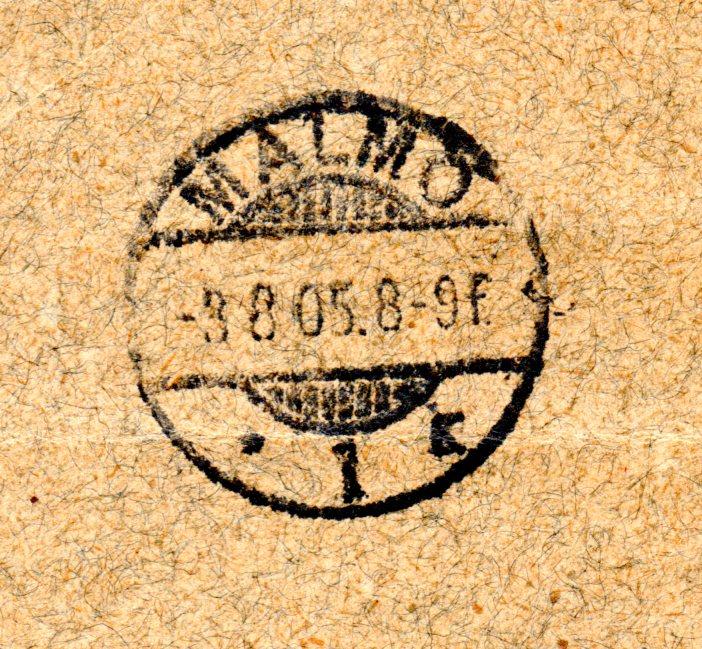 Når brevet er stemplet som det er, mener jeg, at det mere end antyder, at hele brevkassen blev udskiftet efter ankomsten til København. Der blev ikke foretaget en sortering på skibet (af en postmand med en nøgle), i de breve der skulle ende i København, og de der skulle ende i Malmø. Brevet er herefter sendt “på normal vis” til Malmø.