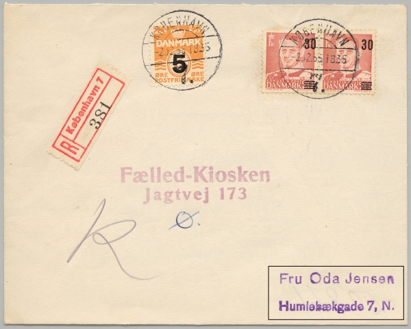 Hvad var egentlig baggrunden for, at man sendte anbefalede breve til en kiosk – kuverten er tydeligt leveret af kiosken, men hvorfor? (Afsender fra bagsiden er indsat på forsiden af brevet).
