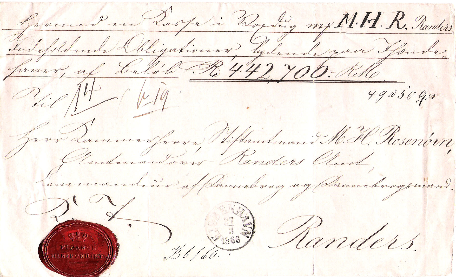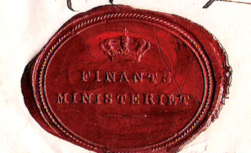 Ingen portopåtegninger med kridt som vanlig. KT Finants Ministeriet ved segl.