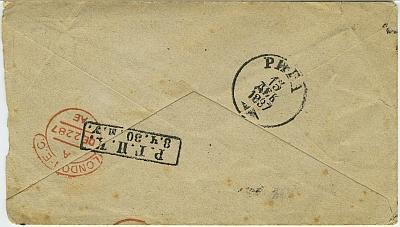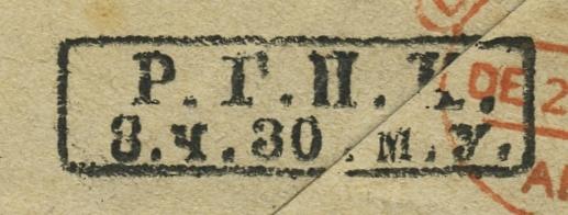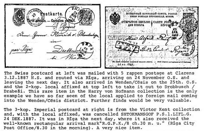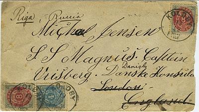 Jeg har erhvervet mig det her viste brev, sendt fra Koldby på Samsø 19.12.1887 til London, hvor det er omadresseret til Riga i Rusland. Stemplet i London DE.22.87 er til at læse og forstå. Det samme er ankomststemplet i Riga 15. december 1887 (Gregoriansk kalender), men hvad betyder rammestemplet: Р.Г.П.К. 8. Ч. 30. М. У. (R.G.P.K. 8. CH. 30. M. U.) ???